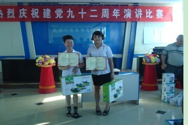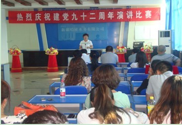 2013年7月1日,公司為慶祝建黨九十二周年,舉辦“一名黨員,一面旗幟,我是黨員,從我做起”的主題演講比賽。來自公司四個支部的11名參賽選手結(jié)合公司工作實際,圍繞身邊共產(chǎn)黨員創(chuàng)先爭優(yōu),發(fā)揮先進性進行了精彩演講,《我驕傲,我是城市供水人》、《奉獻》、《我為黨旗添光彩》、《成就輝煌》等等,他們用飽含真摯感情且富有感染力的語言描述了一位位甘于平凡、樂于奉獻的優(yōu)秀供水人的光輝形象,將供水人愛崗敬業(yè)的工作精神闡釋得生動感人。11名選手聲情并茂的演講,體現(xiàn)了哈密水務(wù)員工為實現(xiàn)公司供水工作做大、做強、做優(yōu)的決心與志向。