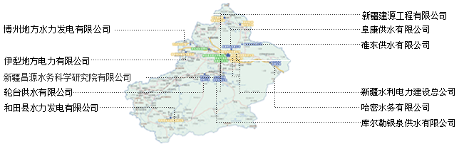 輪臺(tái)供水有限公司 阜康供水有限公司 新疆昌源水務(wù)科學(xué)研究院 新疆水利電力建設(shè)總公司 博州地方水力發(fā)電有限公司 和田縣水力發(fā)電有限公司 伊犁地方電力有限公司 哈密水務(wù)有限公司 庫(kù)爾勒銀泉供水有限公司 富蘊(yùn)峽口水電開(kāi)發(fā)公司 準(zhǔn)東供水有限公司