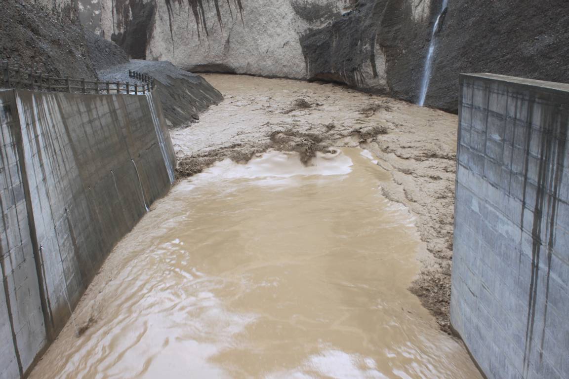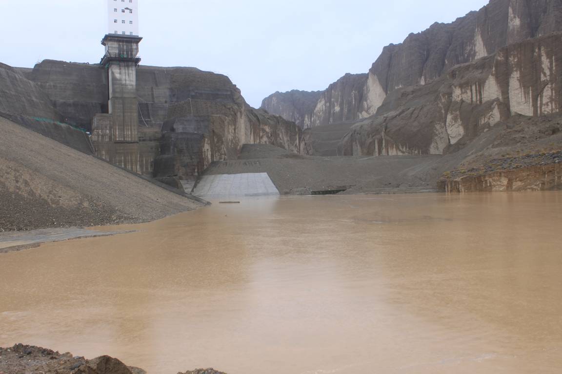 近日,迪那河流域山區(qū)及五一水庫(kù)壩址區(qū)域持續(xù)降雨,受此影響,五一水庫(kù)上游來(lái)水量不斷增大。在6月18日12時(shí)至6月19日12時(shí)24小時(shí)內(nèi),五一水庫(kù)導(dǎo)流兼泄洪沖砂洞進(jìn)口水位連續(xù)上漲約9米。6月19日12時(shí)40分,第一次洪峰通過(guò)五一水庫(kù),峰值水位1303m,峰值流量約440m³/s,超設(shè)計(jì)5年一遇洪水,標(biāo)志著五一水庫(kù)正式進(jìn)入2013年汛期。此次洪峰未對(duì)五一水庫(kù)在建工程造成任何損失。