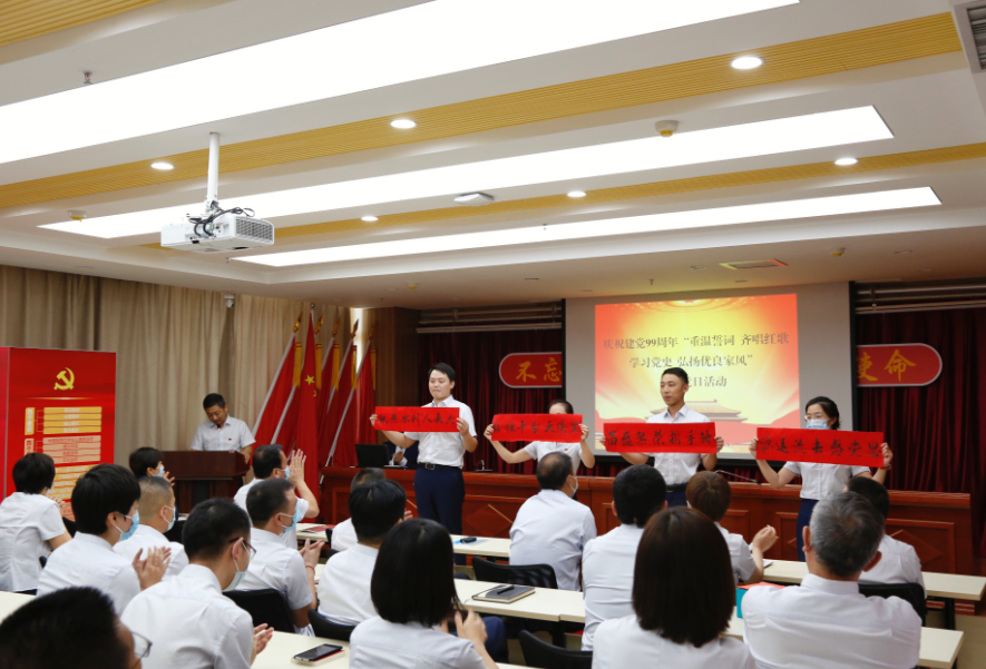 7月1日,根據(jù)集團(tuán)公司黨委安排,集團(tuán)機(jī)關(guān)黨支部組織全體黨員及總部職工開展慶祝建黨99周年“重溫誓詞、齊唱紅歌、學(xué)習(xí)黨史、弘揚(yáng)優(yōu)良家風(fēng)”主題黨日活動(dòng)。
