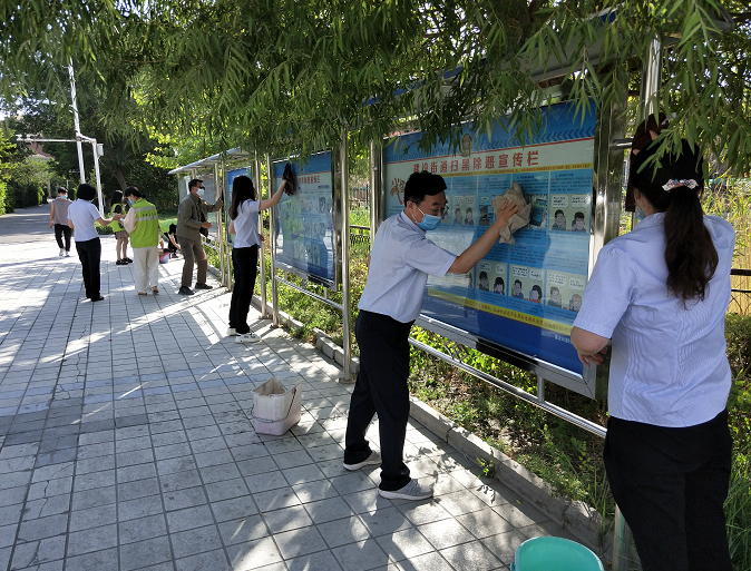隨后,參加活動的黨員們拿著抹布、拎著水桶來到宣傳欄前,將宣傳欄里里外外徹底清洗打掃了一番,經過大家的努力,宣傳欄、廣告牌變得煥然一新。