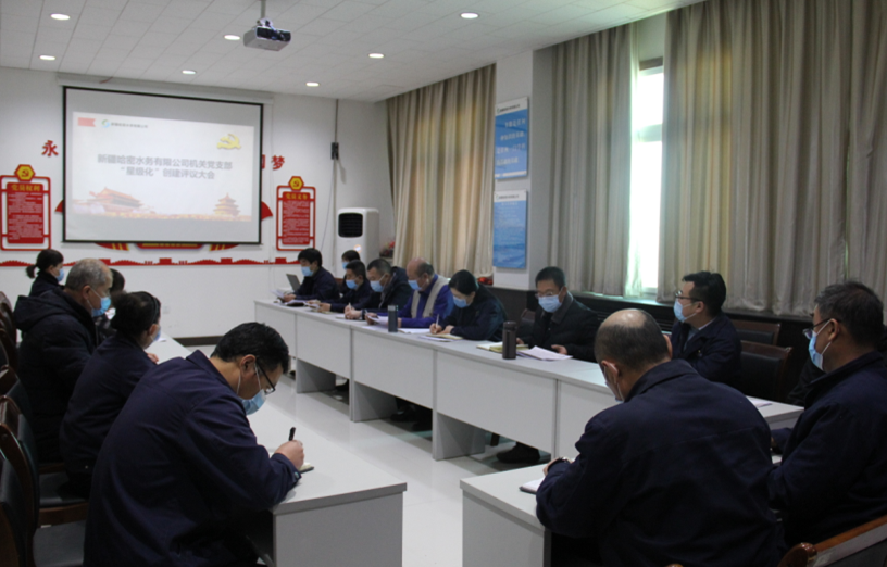 近日,新疆哈密水務(wù)有限公司機(jī)關(guān)黨支部在公司黨員活動(dòng)室召開“星級化創(chuàng)建”評議黨員大會,哈密市伊州區(qū)住建局機(jī)關(guān)黨委委員、“四互”小組成員應(yīng)邀參會,入黨積極分子及部分員工列席會議。